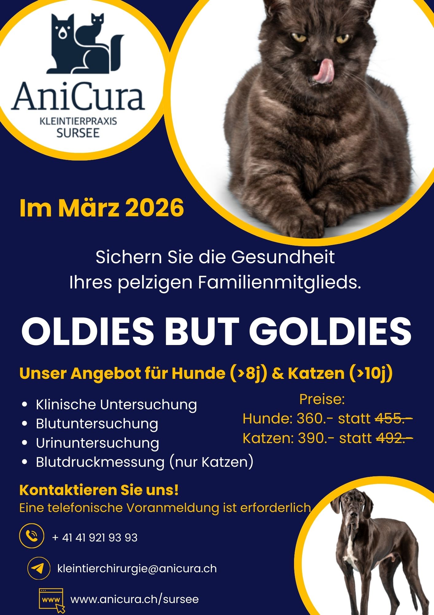 Für die Teilnahme an der Aktion ist eine telefonische Voranmeldung erforderlich. Unser Team berät Sie gerne und vereinbart einen passenden Termin für Ihr Vierbeiner.